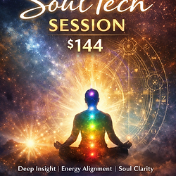 $144 | 60 minutes First Time Client offer $55 | 30 minutes ___ A comprehensive, intuitive, and energetically grounded session designed to help you understand your current life patterns, emotional landscape, and energetic architecture with clarity and precision. Your SoulTech Session includes: • Full energetic assessment A detailed look at your current field, emotional patterns, and internal dynamics showing up right now. • Nervous-system + fascia read Insight into how your body is holding or releasing tension, emotional residue, and past experiences. • Soul pattern + life-cycle analysis Clarity on what season you are in, the themes unfolding, and what is being asked of you internally. • Personalized guidance Direct, practical, easy-to-apply steps for emotional stability, energetic alignment, and mental clarity. • Alignment + integration strategies Simple adjustments, mindset shifts, and somatic practices that support your next phase. • No fluff. No overwhelm. Just clean, accurate insight. Every session is grounded, direct, and tailored to exactly where you are. You will receive: A written summary Key themes Personalized recommendations Any additional messages relevant to your current chapter This session is perfect for anyone wanting clear insight, emotional grounding, energetic alignment, and practical support without complexity or heaviness. Aura Add on Available $44 ___ This add-on delivers a digitally rendered aura-style image based on your current energetic landscape. You’ll also receive a brief written overlay that highlights the key themes moving through your system right now. Includes: • High-resolution aura-style image • Clear, straightforward energetic interpretation • Key themes influencing your field today • Delivered digitally within 24–48 hours Perfect for: Clients wanting a quick energetic check-in, visual insight, or an image to track shifts over time. Soul Contract Add on Available $66 ___ This add-on analyzes core numbers from your birth name to illuminate the patterns, strengths, and lessons influencing your life right now. It is a simplified version of a full Soul Contract Reading—clean, direct, and easy to integrate. Includes: • Core soul themes encoded in your name • Life lessons currently at play • Natural strengths and challenges • Current phase/growth cycle themes • Delivered digitally within 24–48 hours Perfect for: Clients who want quick clarity on why certain patterns repeat or what energetic cycle they’re moving through.